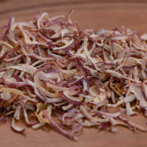 Mature, fresh red onions are washed, trimmed, cut and dehydrated by passing Hot Air Closed Continuous System.